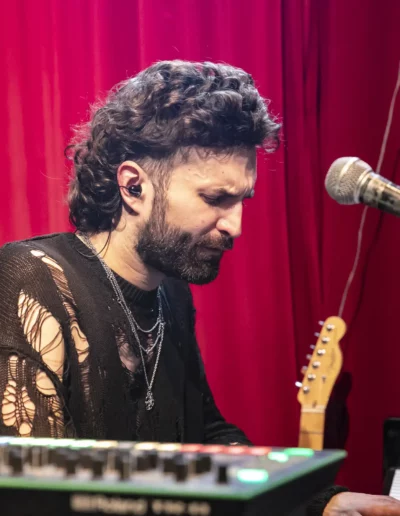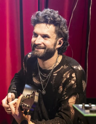 À mes côtés, le sublime et déjanté Kaligari, qui manie le piano, la guitare et des . Mais bordel, ça sonne bon.