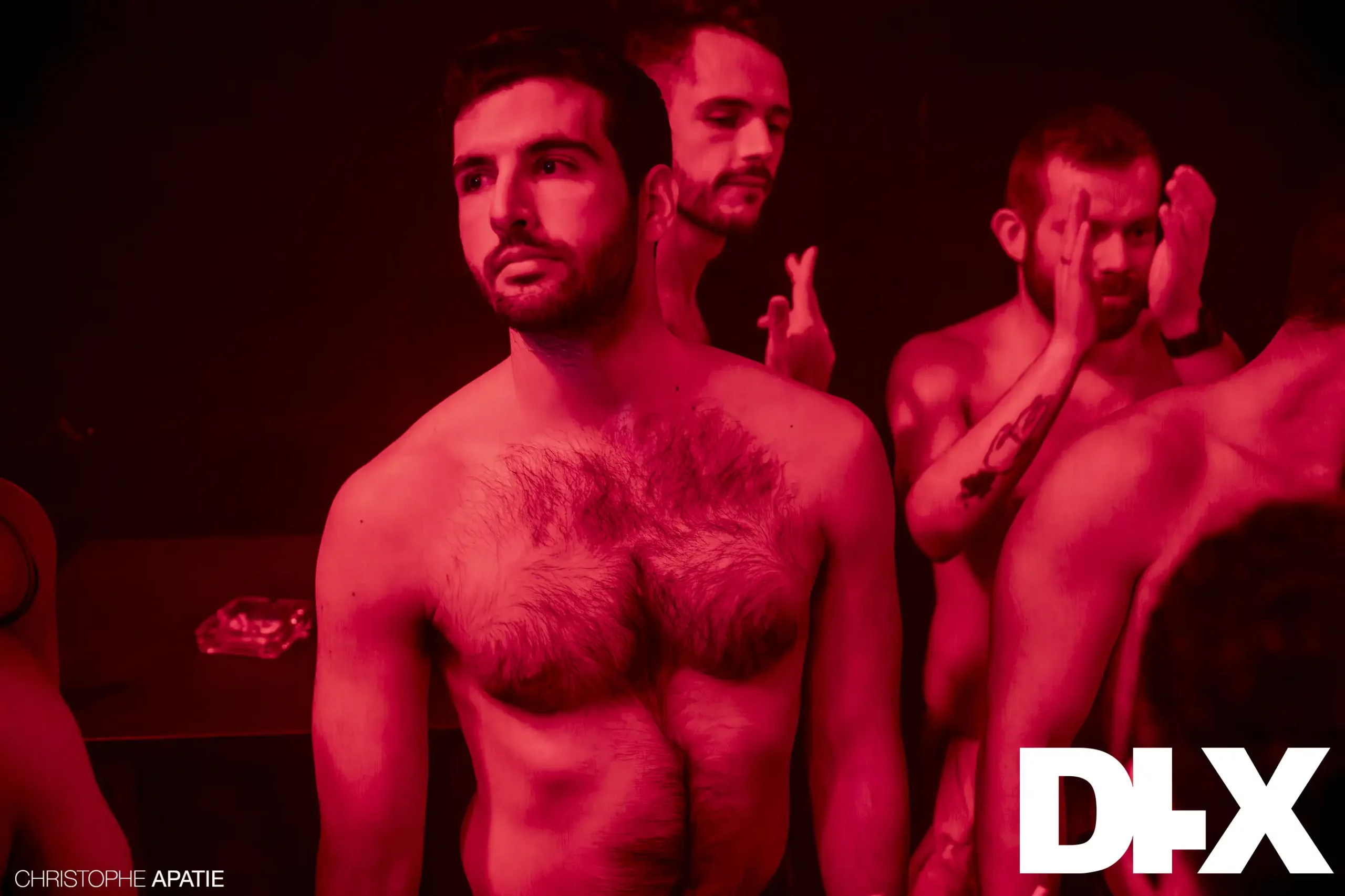 La salle commence à vivre. Les murs en béton brut, les lumières rouges, la musique presque imperceptible. Le Vide n’est pas une absence, mais une invitation : se débarrasser des couches de l’année écoulée, se préparer à renaître. Les premiers arrivants, encore timides, s’avancent dans cet espace dépouillé. On se déshabille — métaphoriquement, littéralement — de ce qui pèse. Les regards se croisent, mais les mots sont inutiles. Le silence est un prélude.