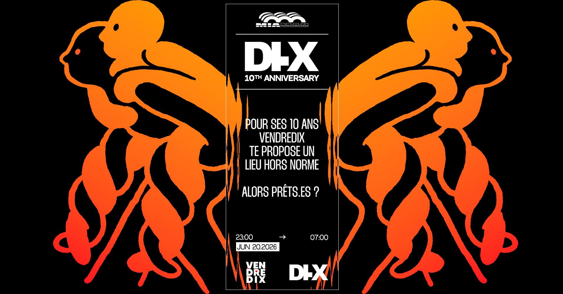 VENDREDIX: 10 ans de folie ! Pour fêter ça, on t’offre un lieu hors norme : le MIA MAO, pour une nuit exceptionnelle le 20 juin 2026, de 23h à 7h. Alors, tu viens ? 🔥💃